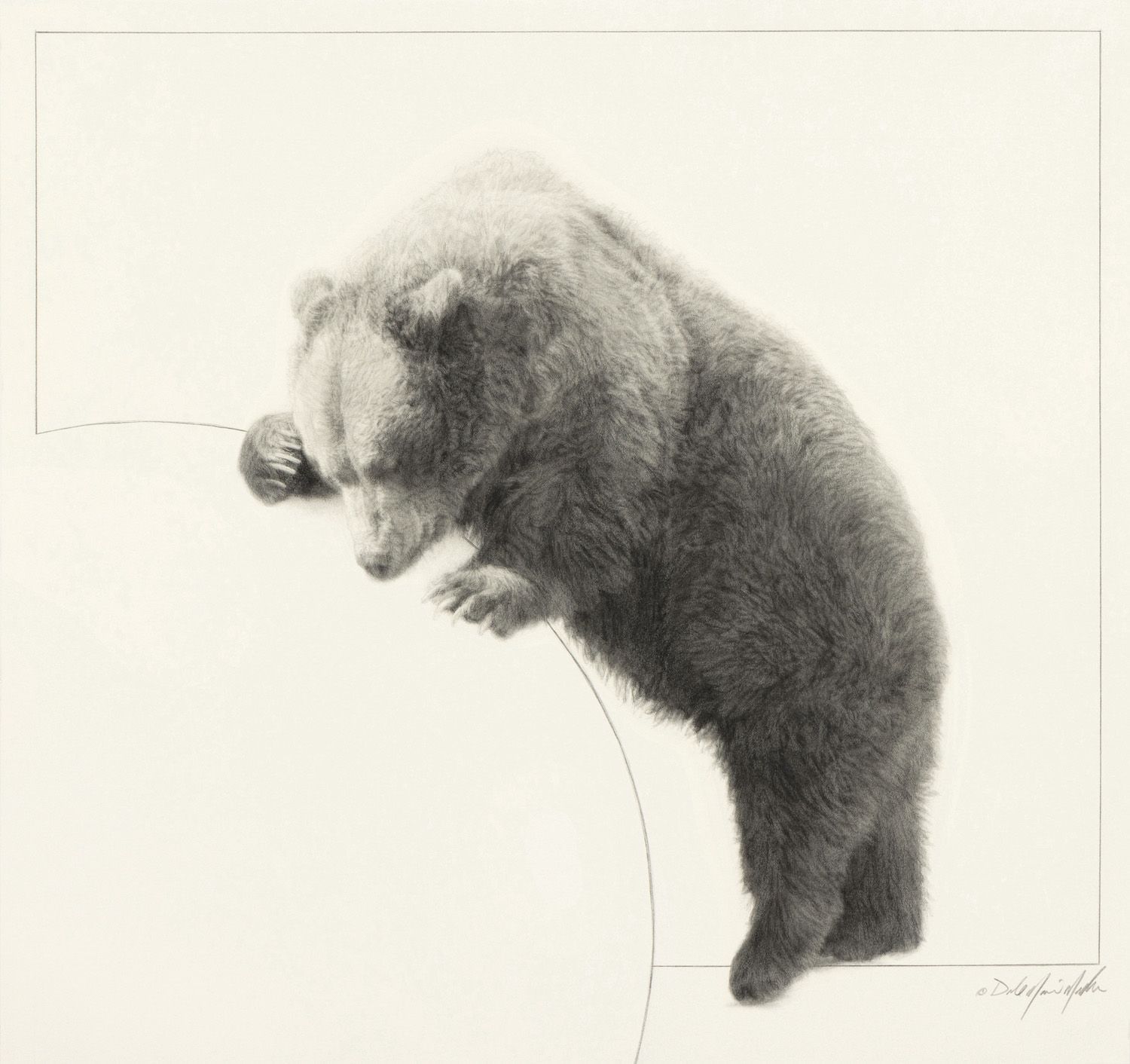 stage of my cognitive and creative process, appreciating a bear just being a bear or being present with a wolf sharing the warmth of the sun. Moments in nature that ignite my sense of wonder are often inspired by these personal experiences and evolve into drawings in the studio.